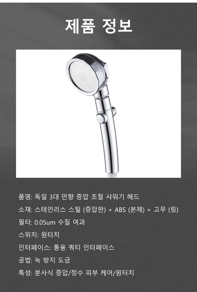 원터치 증압 샤워 헤드 전체 이미지